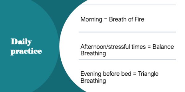 Coffee Breathing = Morning or when you want to stimulate your nervous system